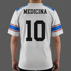 As camisas em estoque possuem uma personalização padrão, com o nome "MEDICINA" e número "10".